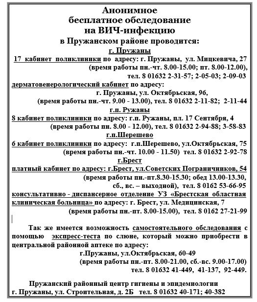 На 01.11.2025 года кумулятивное число ВИЧ-инфицированных в Пружанском районе (за весь период статистического учёта с 1989г. по 01.11.2025г.) составляет 67 случаев, количество людей, живущих с ВИЧ – 55, показатель распространенности 133,5* на 100 000 населения.